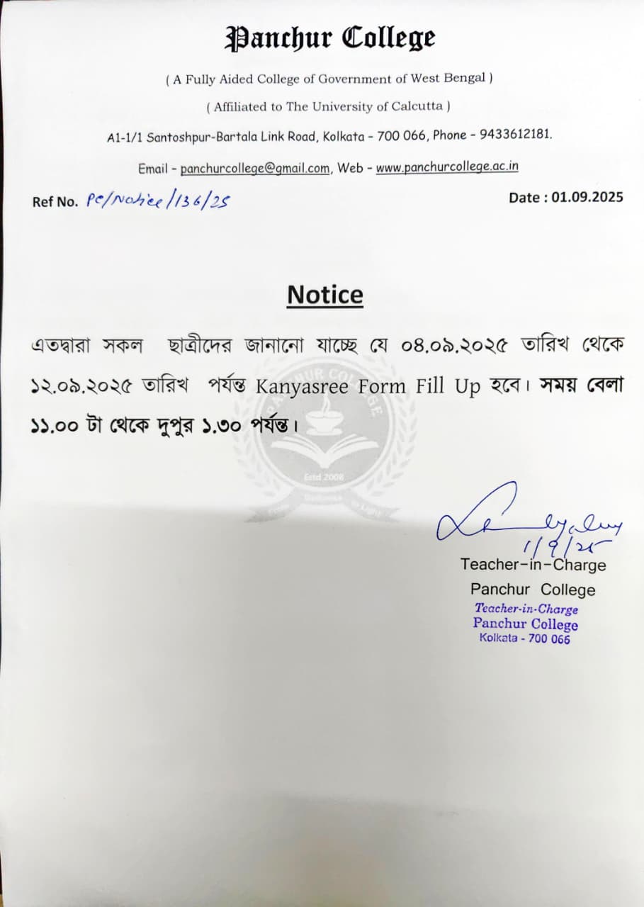 Notice for kanyasree Form Fill Up
