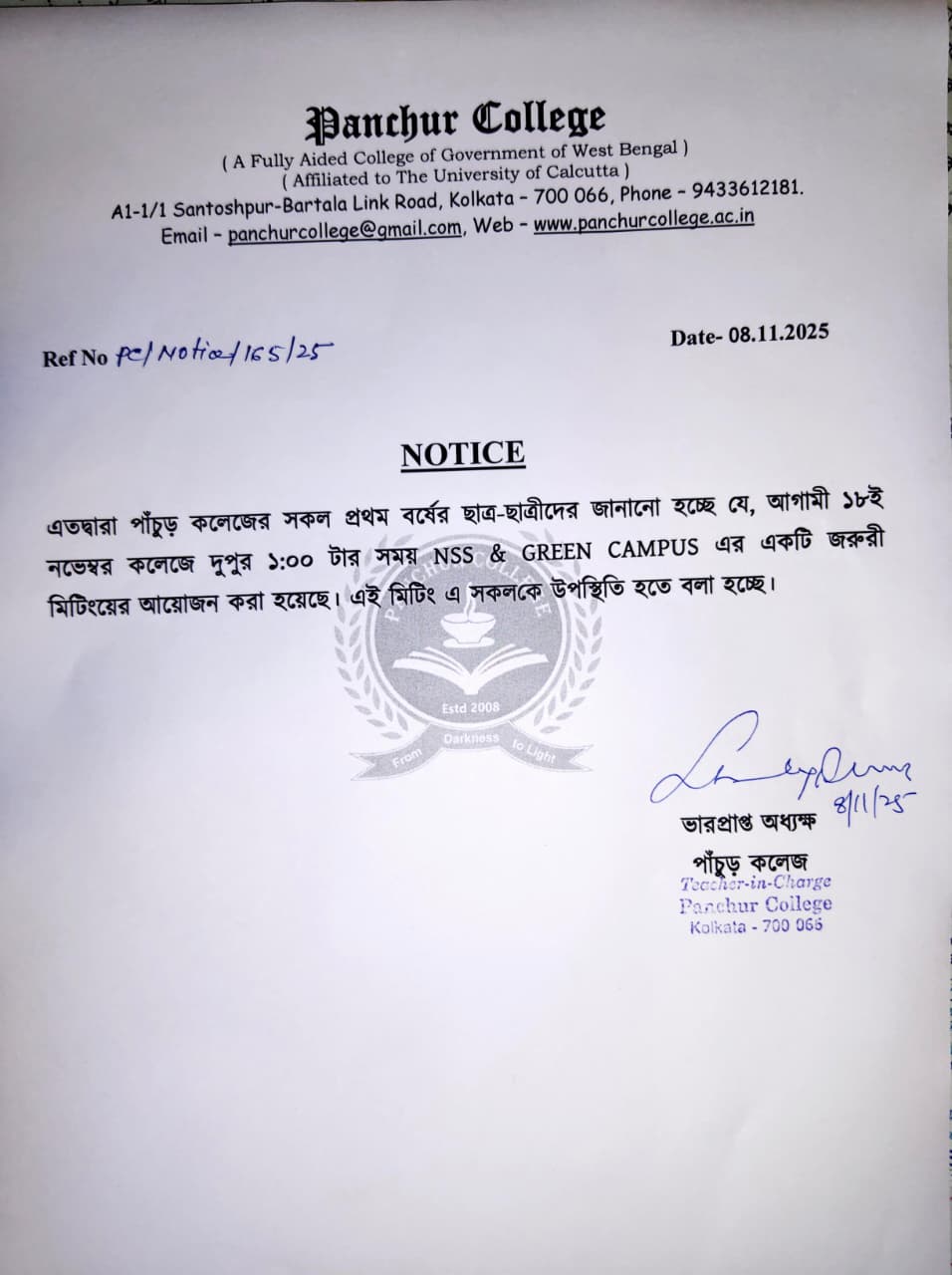 Notice for NSS & Green Campus