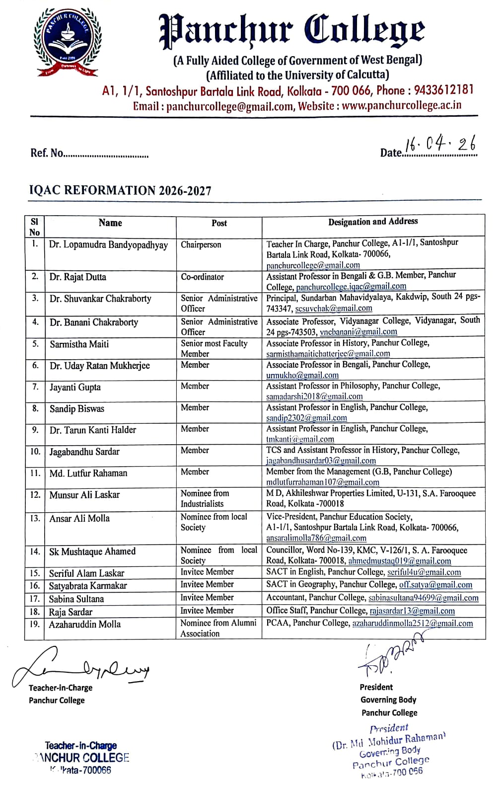 Affiliated to University of Calcutta